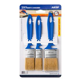 Набор кистей плоских для лаков Акор Эксперт (25, 35, 50 мм), смешанная щетина, пластиковая ручка, 3 шт
