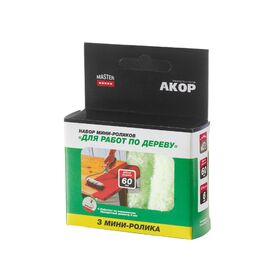 Мини-валик из микрофибры для дерева Акор Мастер, D40 x 60 мм, бюгель 6 мм, набор 3 шт