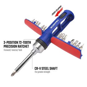 Отвертка реверсивная с трещоткой Workpro, с набором бит, 15 предметов