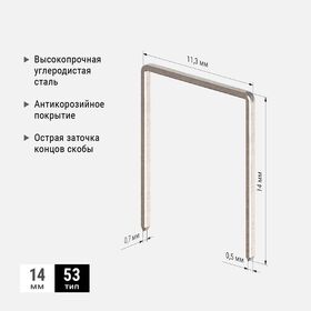 Скобы закаленные Stelgrit, тип 53, 14 мм, 1000 шт