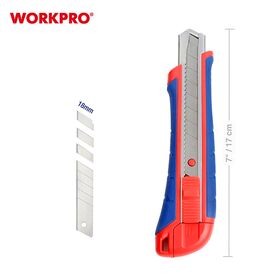 Нож пистолетный Workpro, с автофиксатором, 3 сменных лезвия, 18 мм
