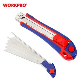 Нож пистолетный Workpro, с автофиксатором, автозагрузка лезвий, 5 сменных лезвий, 18 мм