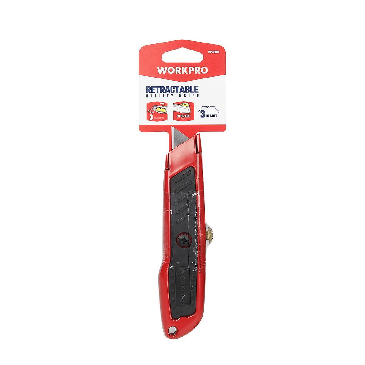 Нож пистолетный Workpro, трапециевидный, 3 запасных лезвия
