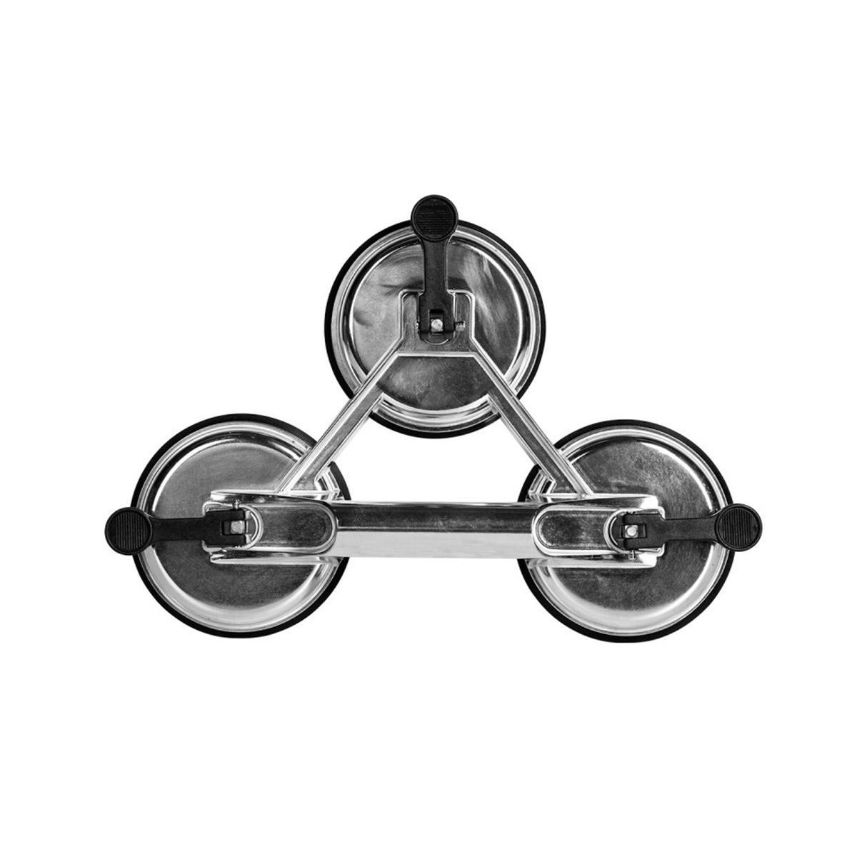 Тройной стеклодомкрат обеспечивает крепкий захват стекольных или зеркальных изделий, а также других грузов, имеющих гладкую поверхность, небольших размеров и весом до 150 кг.