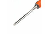 Сделана из закаленной хромованадиевой стали, выдерживает высокие нагрузки. Эргономичная трехкомпонентная рукоятка делает работу комфортной. Стальной затыльник позволяет применять стамеску при работе с молотком.
