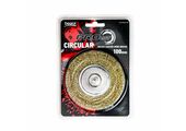 Щетка для дрели в форме чашки. Рабочая поверхность выполнена из латунированной гофрированной стальной проволоки диаметром 0,6 мм. Диаметр щетки составляет 65 мм.