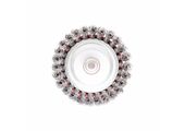 Применяется совместно с угловыми шлифовальными машинами. Рабочая часть состоит из скрученной в пучки стальной проволоки. Специальная форма щетки в виде диска позволяет работать в труднодоступных местах.