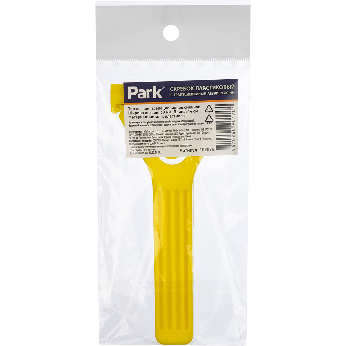 Скребок трапециевидный Park, пластиковая рукоятка, 60 мм