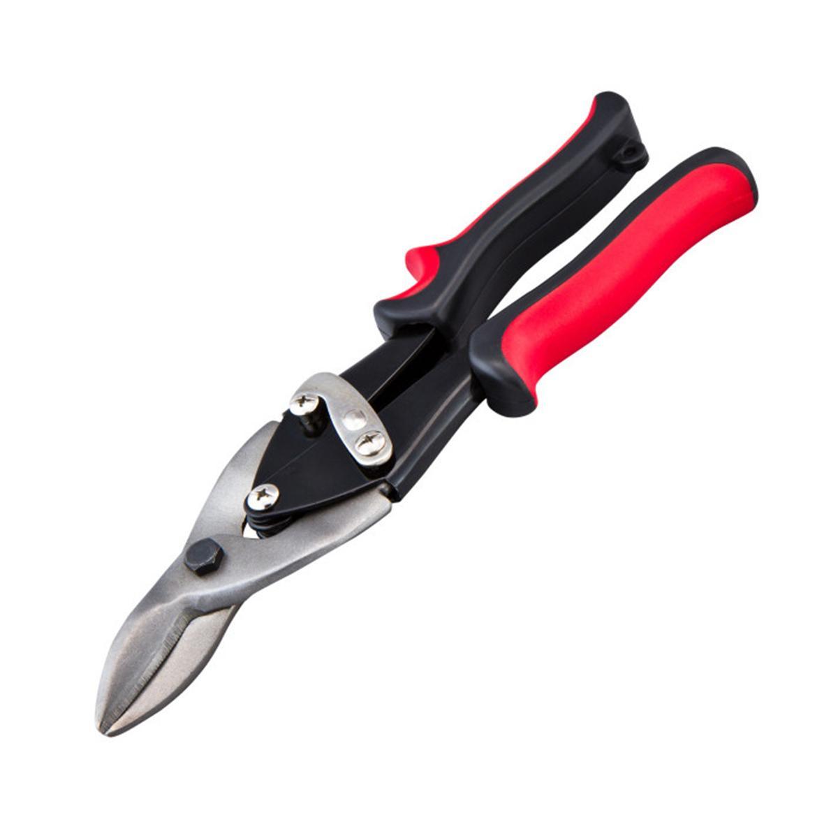 Ножницы по металлу леворежущие. Лезвия выполнены из износостойкой углеродистой стали. Насечки на режущих кромках не дают материалу выскальзывать при использовании. Двухкомпонентные рукоятки обеспечивают надежный хват.
