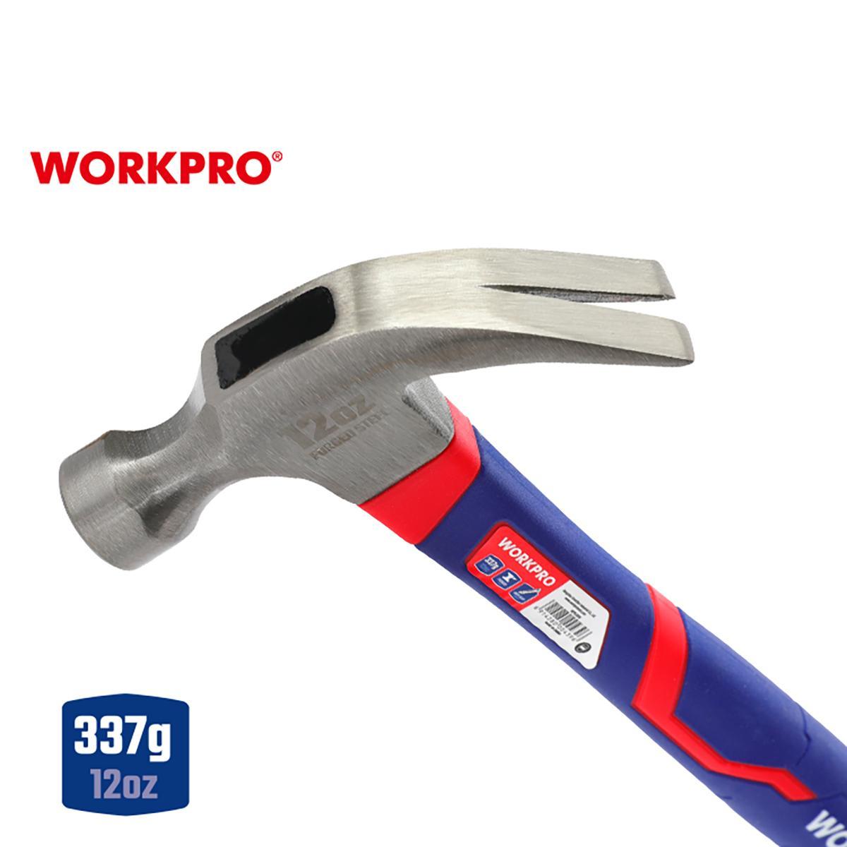 Молоток-гвоздодер кованый Workpro, фиберглассовая рукоятка, 337 г