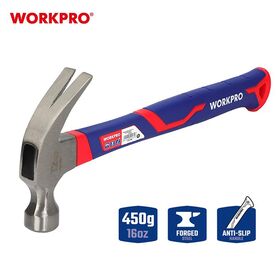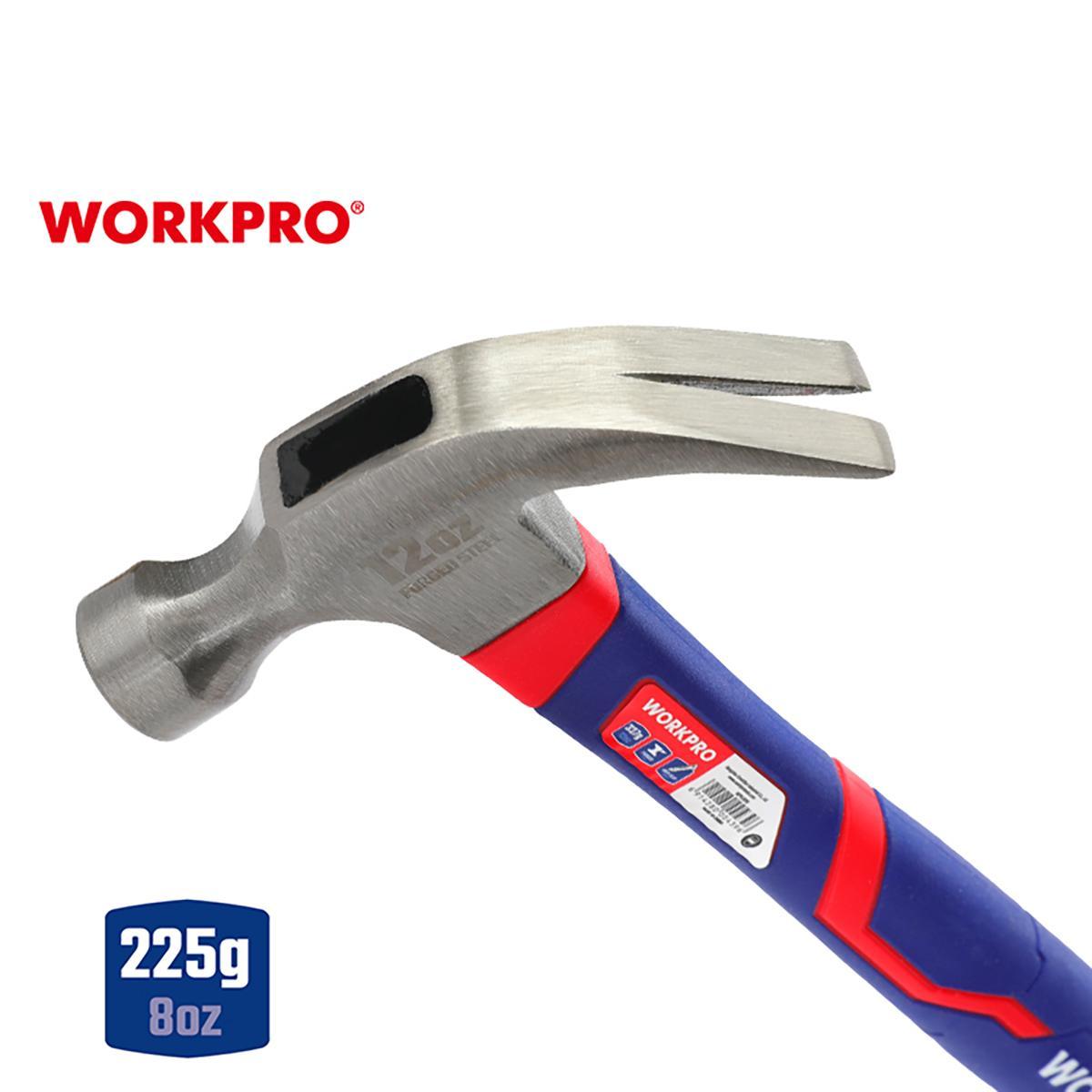 Молоток-гвоздодер кованый Workpro, фиберглассовая рукоятка, 450 г