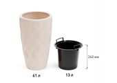 Кашпо напольное «Ротанг» стилизовано под вязаное плетение и выполнено из прочного пластика. Кашпо подойдет для любых видов растений. Пластиковые изделия не нуждаются в специальных условиях хранения. Их легко чистить достаточно просто сполоснуть теплой водой. Пластиковые кашпо не царапают и не загрязняют поверхности, на которых стоят. Пластик дольше хранит влагу, а значит растение реже нуждается в поливе. Пластмасса не пропускает воздух, поэтому корневой системе растения не грозят резкие перепады температур.