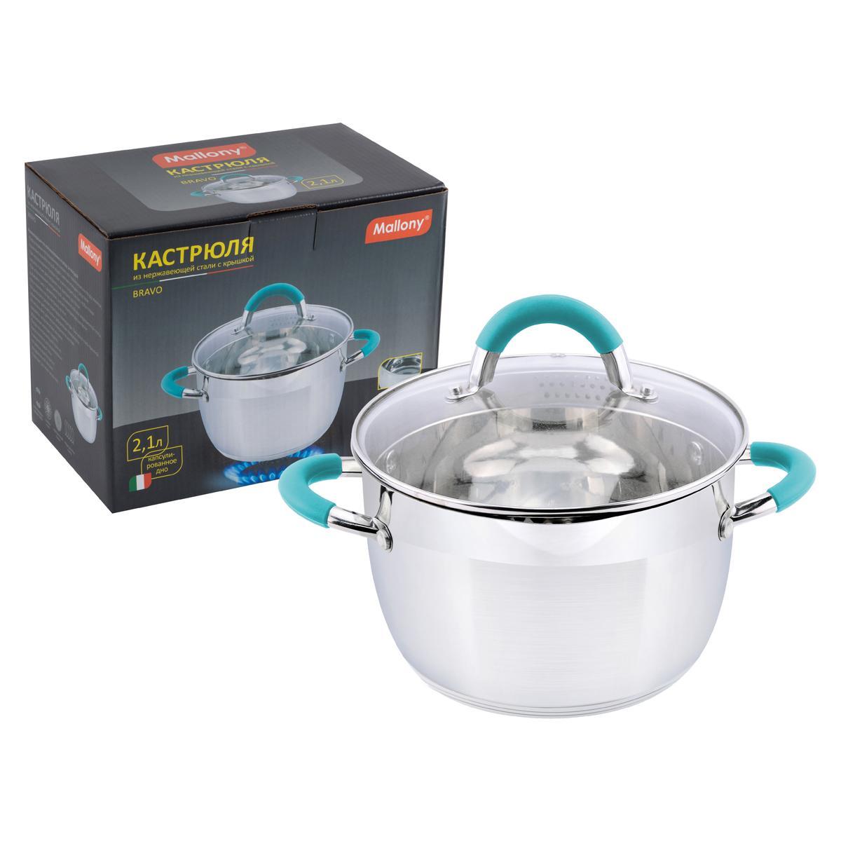 Кастрюля Mallony Bravo 2,1 л, стеклянная крышка, нержавеющая сталь