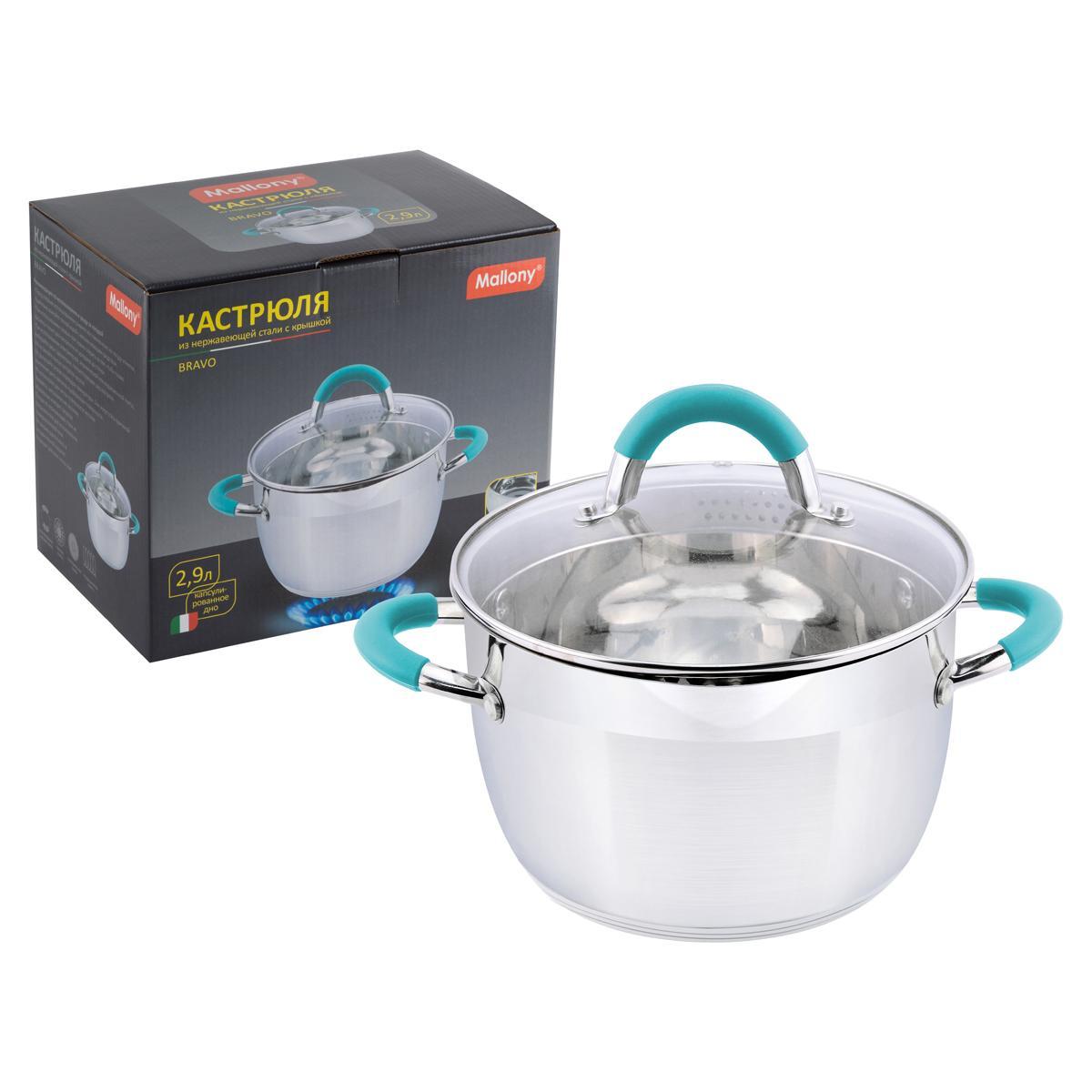 Кастрюля Mallony Bravo 2,9 л, стеклянная крышка, нержавеющая сталь