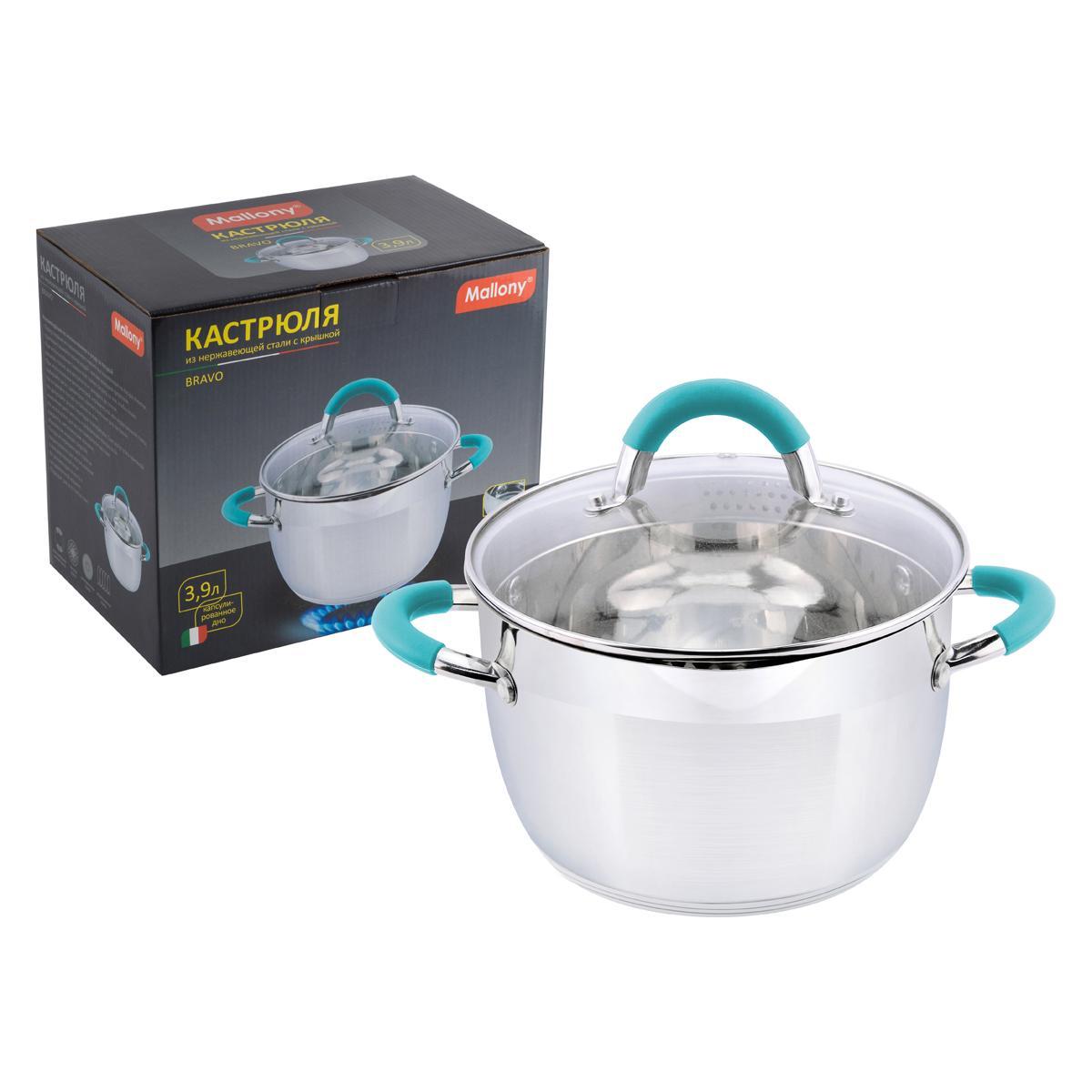 Кастрюля Mallony Bravo 3,9 л, стеклянная крышка, нержавеющая сталь