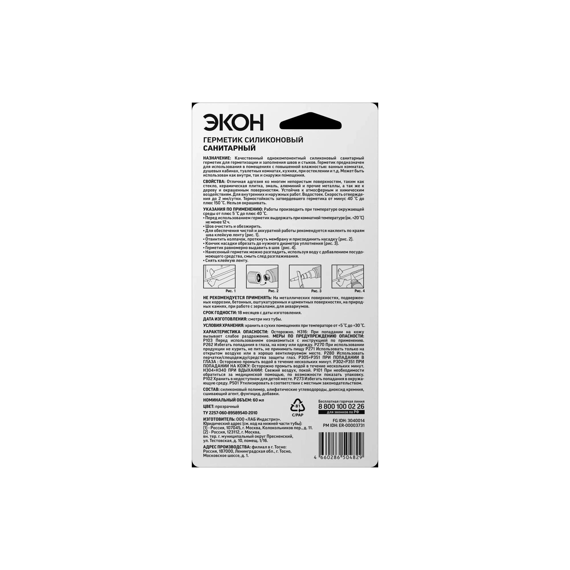 Силиконовый санитарный герметик Экон, 60 мл, прозрачный