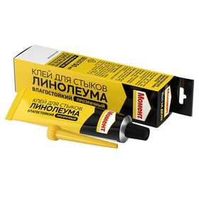 Влагостойкий прозрачный клей для стыков линолеума поставляется с удобным носиком для точного и равномерного нанесения.