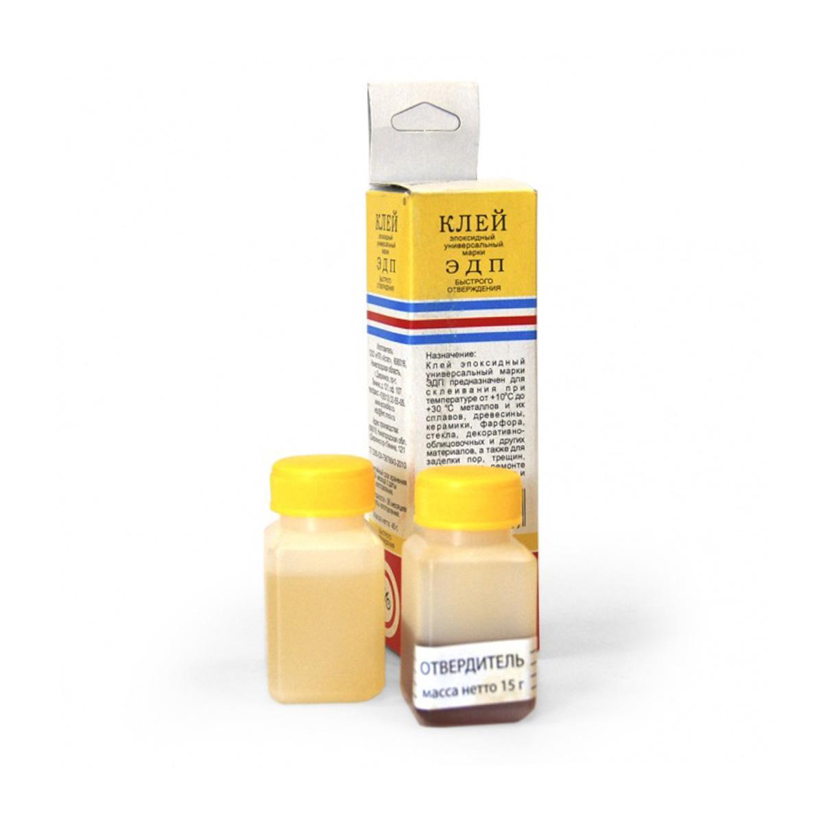 Клей эпоксидный универсальный ЭДП двухкомпонентный (ТУ 2385-024-75678843-2010) - надежное и универсальное средство для склеивания практически любых материалов: металлов, сплавов, стекла, древесины, фарфора, керамики, декоративно-облицовочных материалов и других. (За исключением посуды и предметов, имеющий непосредственный контакт с пищей).