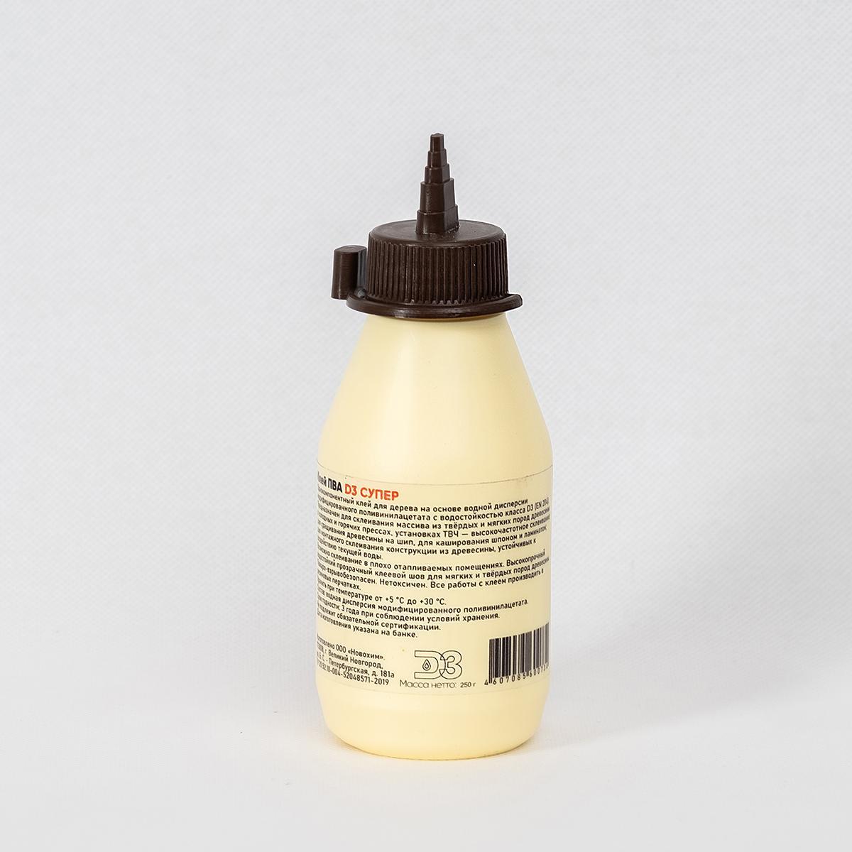 Клей ПВА D3 Супер Новохим, влагостойкий, 0,25 кг