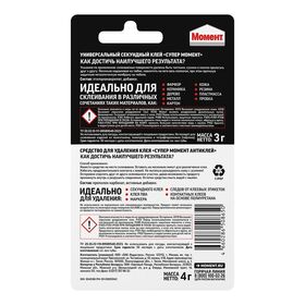 Клей секундный универсальный Супер Момент Комбо + Антиклей, 3 г + 4 г, прозрачный