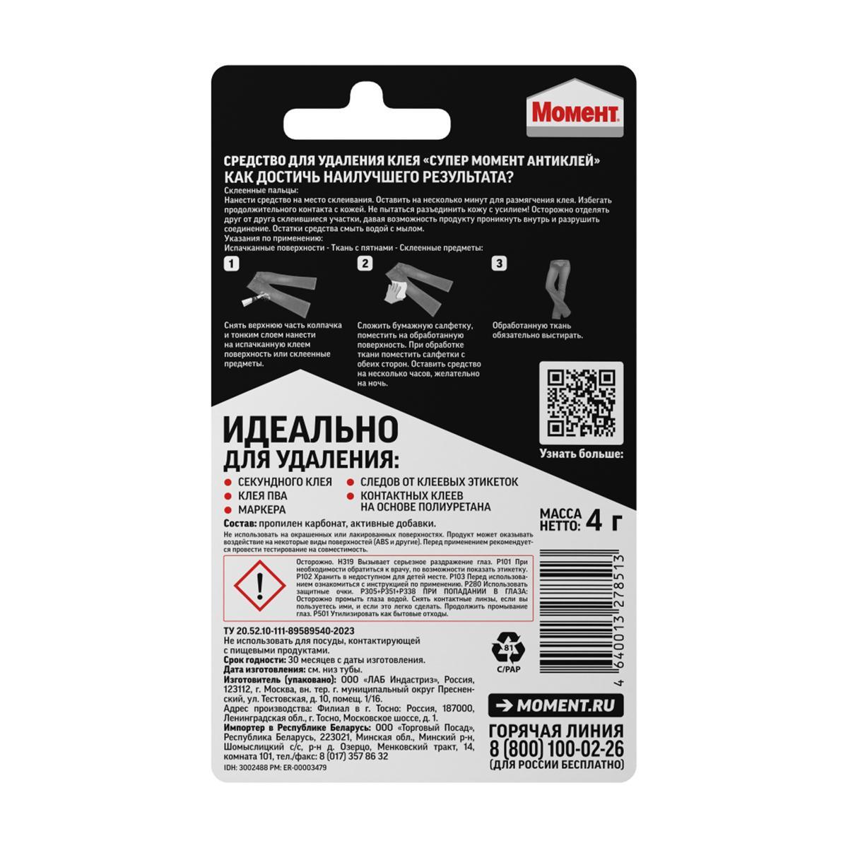 Средство для удаления клея Супер Момент Антиклей, 4 г
