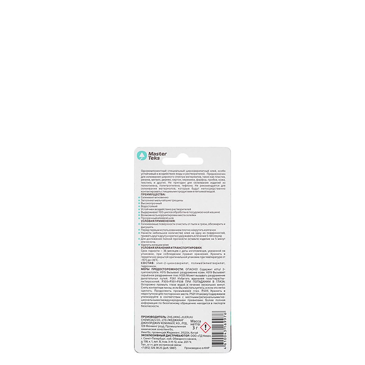 Супер-клей цианоакрилатный MasterTeks, водостойкий, гель, 3 г
