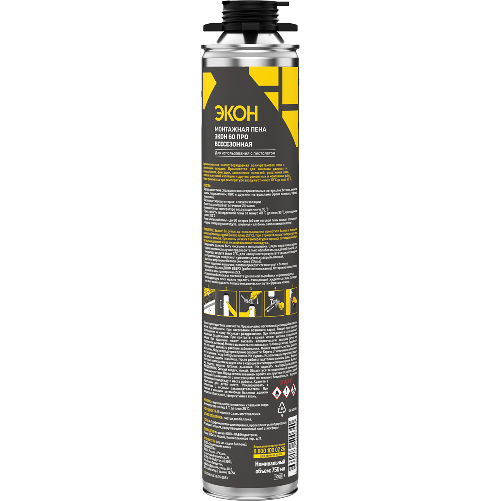 Профессиональная монтажная пена Экон 60 ПРО 3048171, всесезонная, 750 мл