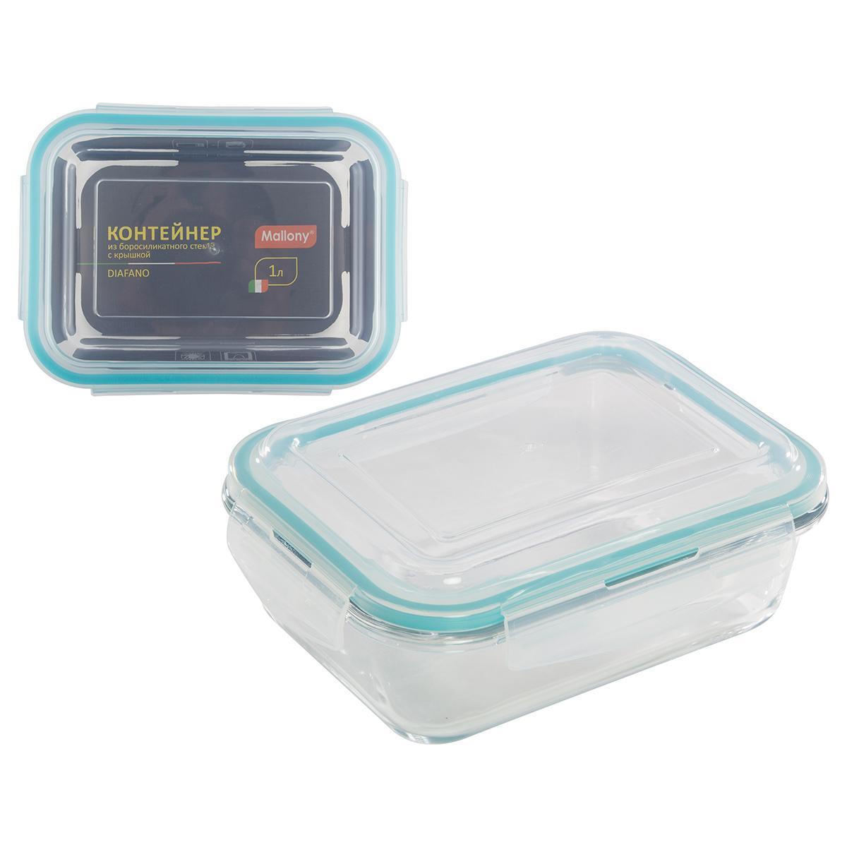 Контейнер Mallony Diafano 1 л, жаропрочное стекло, пластиковая крышка