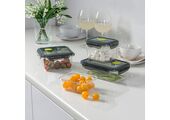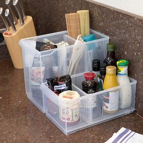 С помощью нескольких перегородок, которые идут в комплекте, и специальных пазов можно менять размер отделений контейнера по необходимости, приспособив как для мелочей, так и для крупных предметов. Прозрачные стенки позволяют видеть, что хранится внутри каждого из контейнеров.