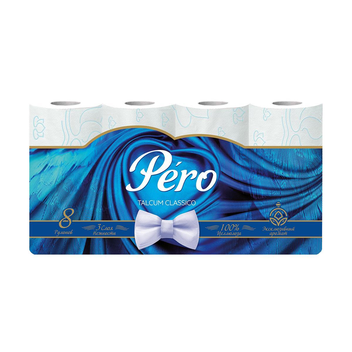 Туалетная бумага Pero, трехслойная, 8 рулонов, белая