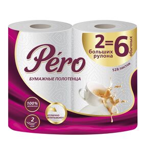 Бумажные полотенца GrandPero, двухслойные, 2 рулона, 33 м, белые