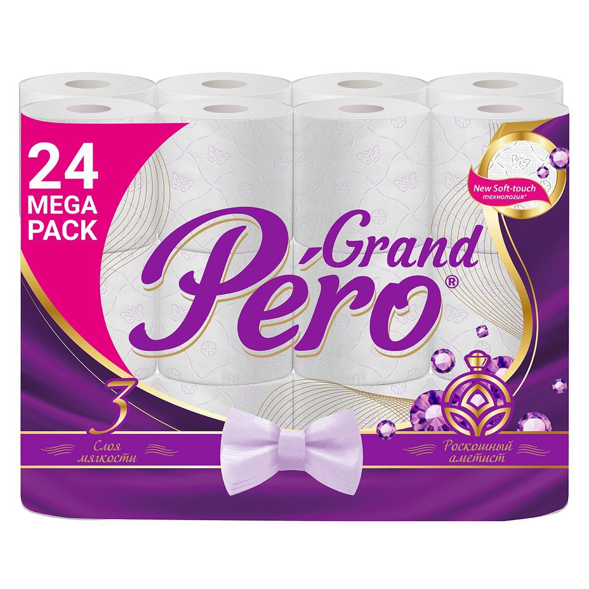 Туалетная бумага GrandPero Роскошный аметист, трехслойная, 24 рулона, белая