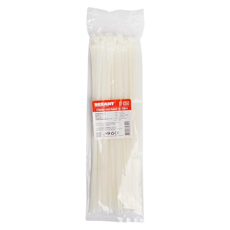 Хомут-стяжка Rexant, нейлон, 4,8 x 350 мм, 100 шт, белый