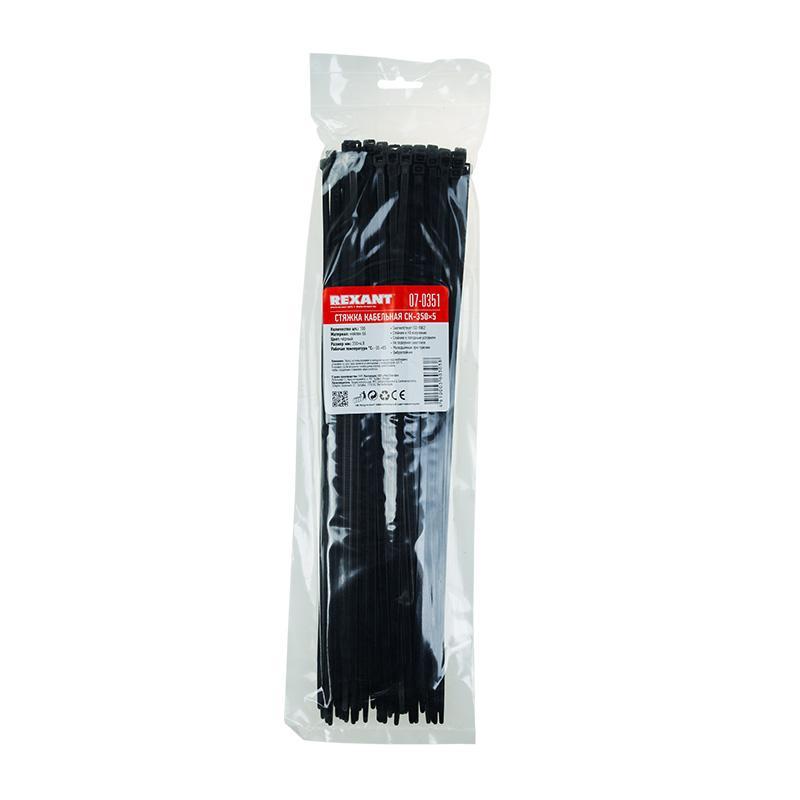 Хомут-стяжка Rexant, нейлон, 4,8 x 350 мм, 100 шт, черный