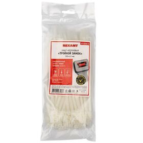 Хомут-стяжка с тройным замком Rexant, нейлон, 4,8 x 200 мм, 100 шт, белый