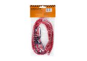 Крепежный шнур Шабашка изготовлен из резиновой синтетической оплетки, которая гарантирует эластичность и прочность при использовании. Для закрепления используются встроенные крюки.