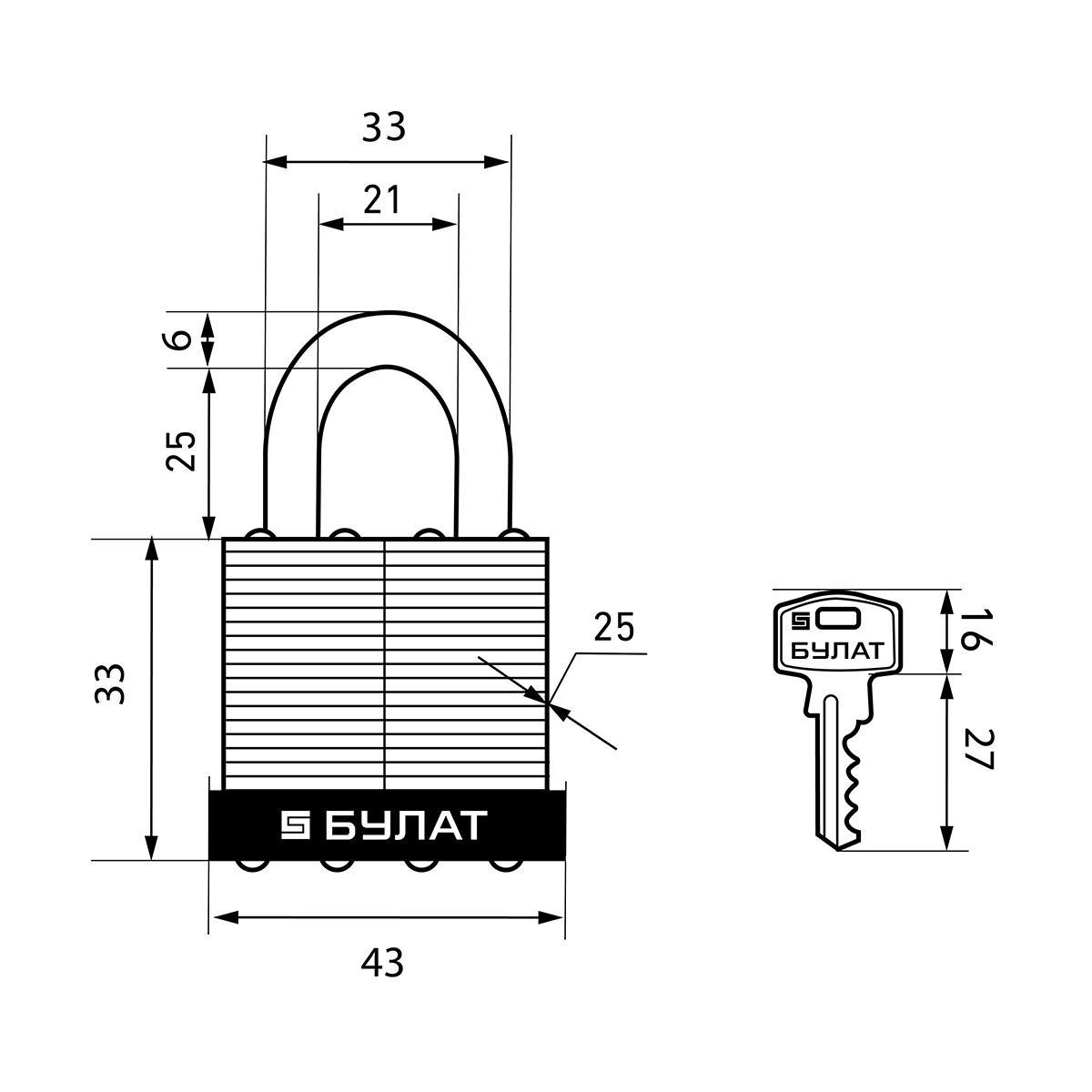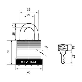 Замок навесной Булат ВС 0140, d 6 мм, 5 ключей