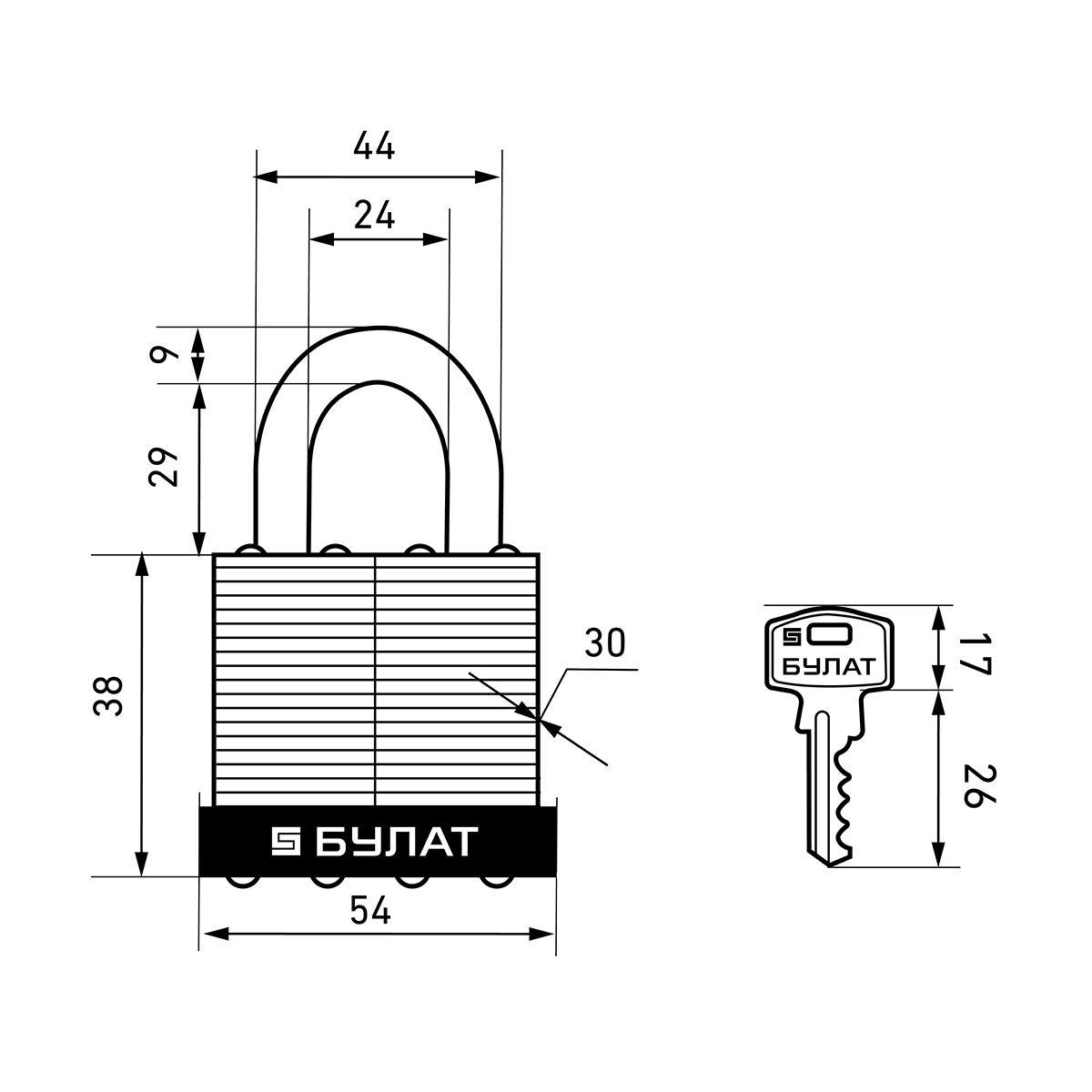 Замок навесной Булат ВС 0150, d 9 мм, 5 ключей