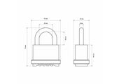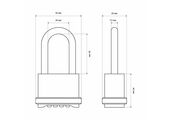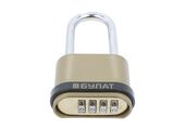 Замок навесной с длинной дужкой. Пластиковый кожух защищает замок от внешнего воздействия окружающей среды. Есть функция автоматического закрывания, цилиндровый механизм секрета, а также 5 ключей в комплекте.
