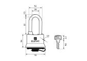 Пластиковый кожух защищает замок от внешнего воздействия окружающей среды. Есть функция автоматического закрывания, цилиндровый механизм секрета, а также 5 ключей в комплекте.