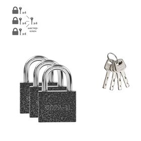Замок навесной Нора-М МС-1103, мастер-система (3 замка x 40 мм, 16 ключей), серый