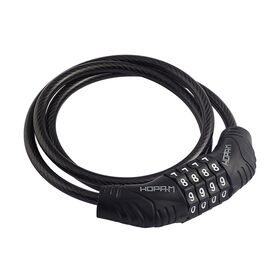Велосипедный замок запирается на кодовый механизм, который можно перекодировать.