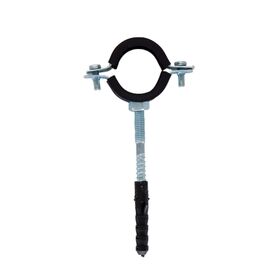 Хомут металлорезиновый с дюбелем и шурупом выдерживает предельную нагрузку на скручивание до 90 Hm. Металлические пластины хомута имеют два ребра жесткости. Резиновый профиль изготовлен из высококачественной резины EPDM, не боящейся перепадов температур.