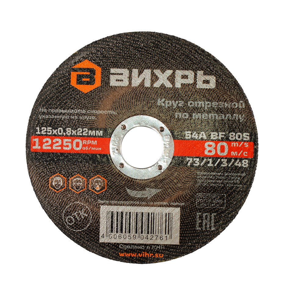Круг отрезной по металлу Вихрь 125х0,8х22 мм