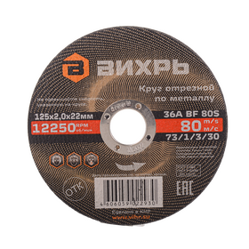 Круг отрезной по металлу ВИХРЬ 125х2,0х22 мм
