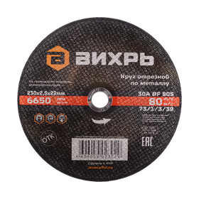 Круг отрезной по металлу ВИХРЬ 230х2,5х22 мм