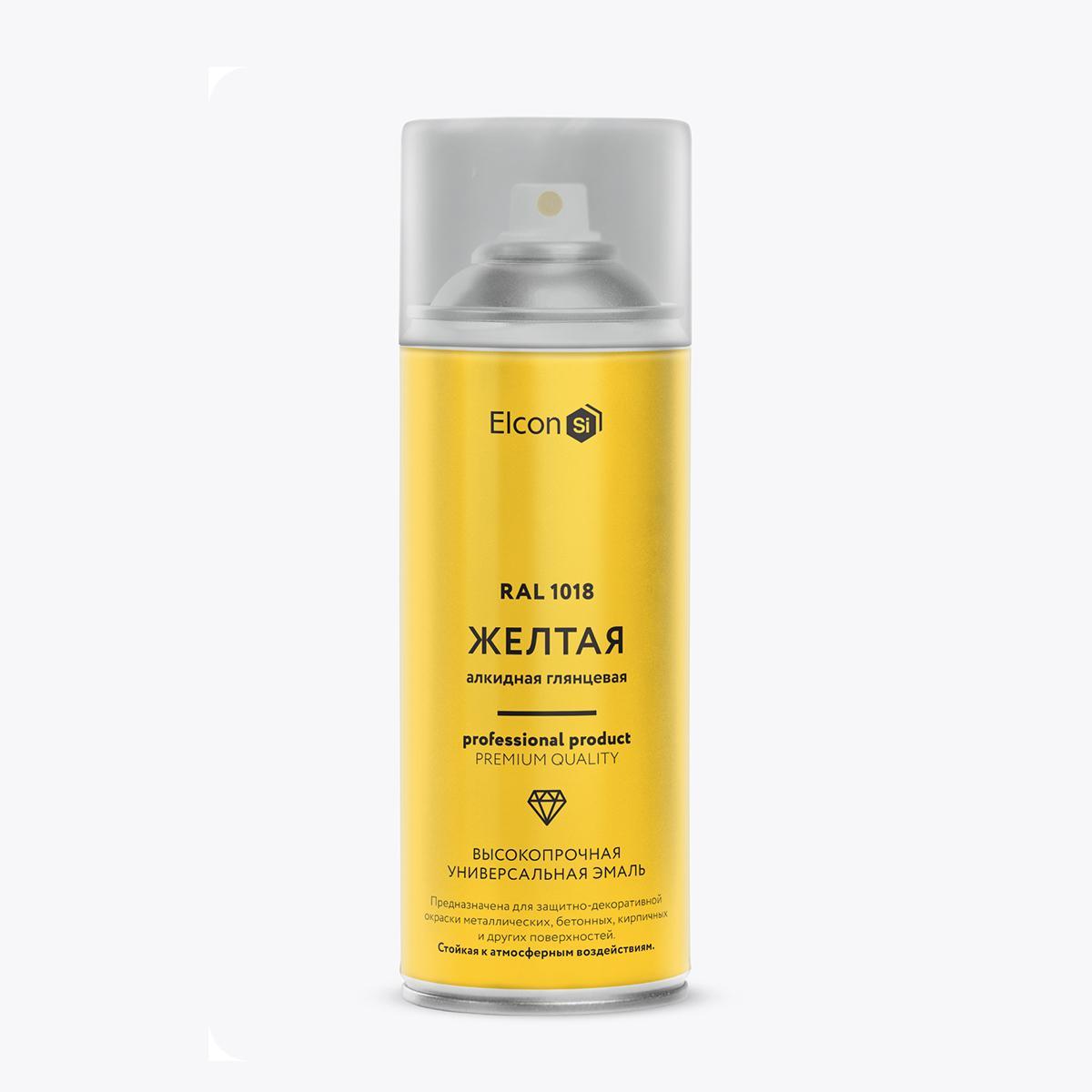 Аэрозольная алкидная эмаль Elcon, глянцевая, 520 мл, RAL 1018, желтая
