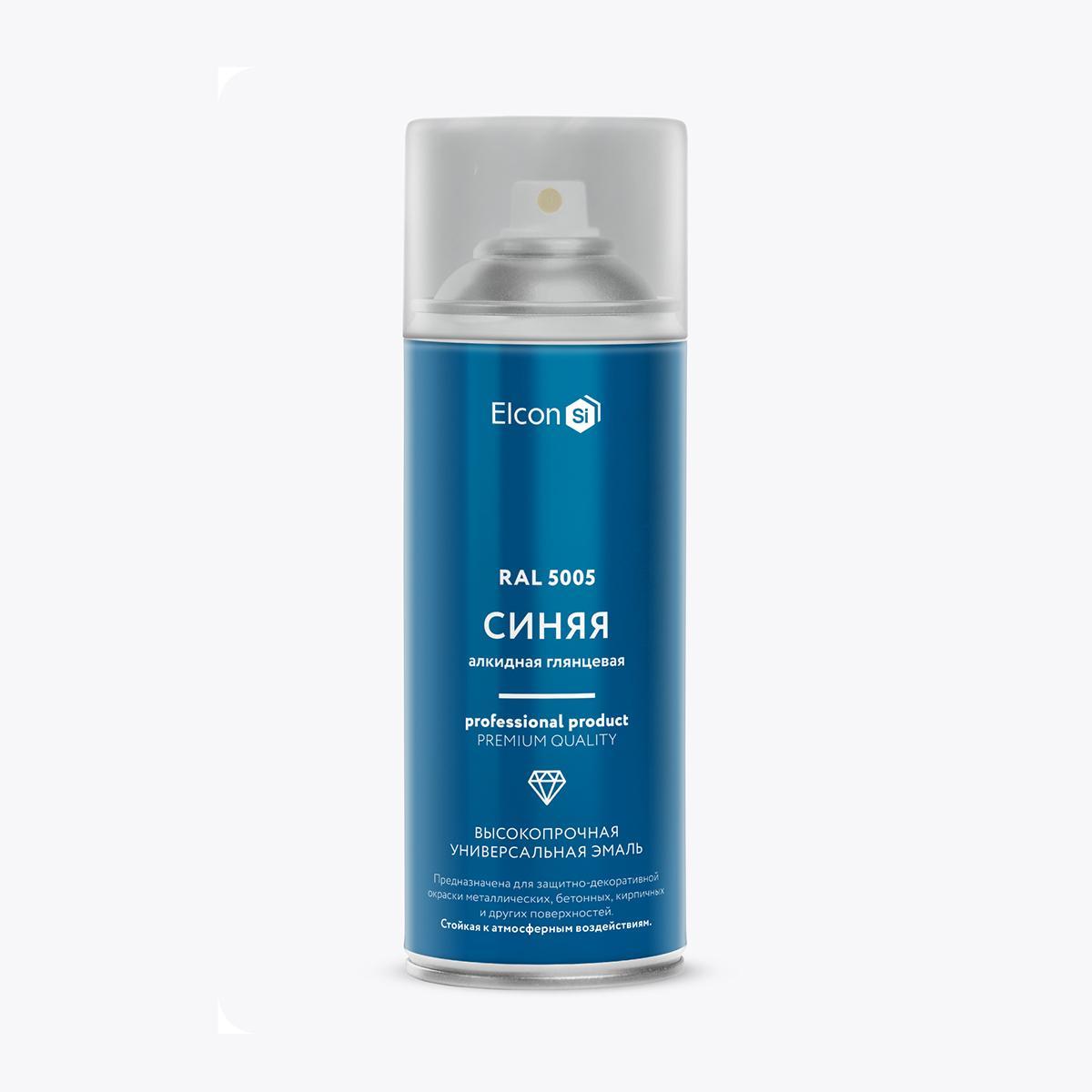 Аэрозольная алкидная эмаль Elcon, глянцевая, 520 мл, RAL 5005, синяя