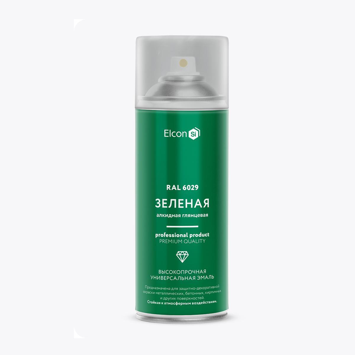 Аэрозольная алкидная эмаль Elcon, глянцевая, 520 мл, RAL 6029, зеленая