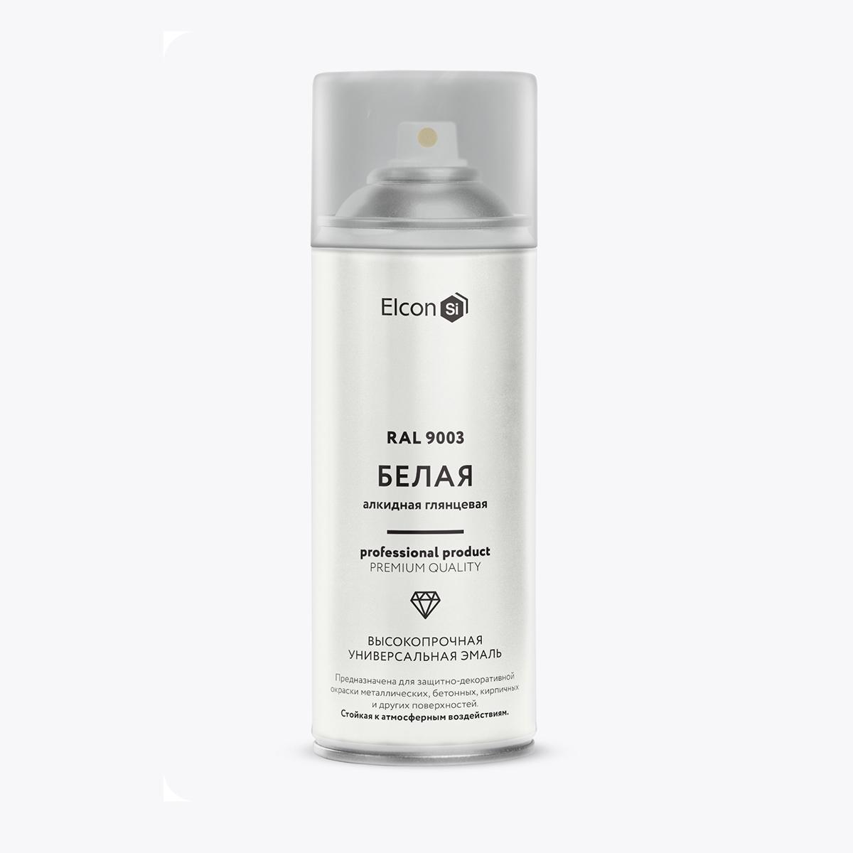 Аэрозольная алкидная эмаль Elcon, глянцевая, 520 мл, RAL 9003, белая
